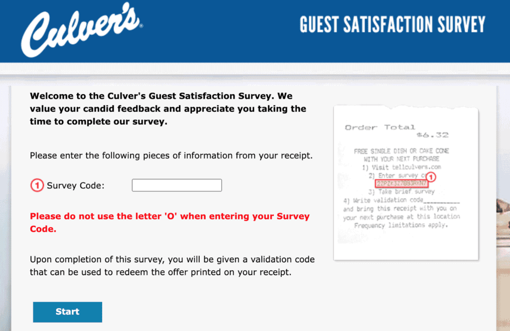 - Type in the survey code printed on your receipt
